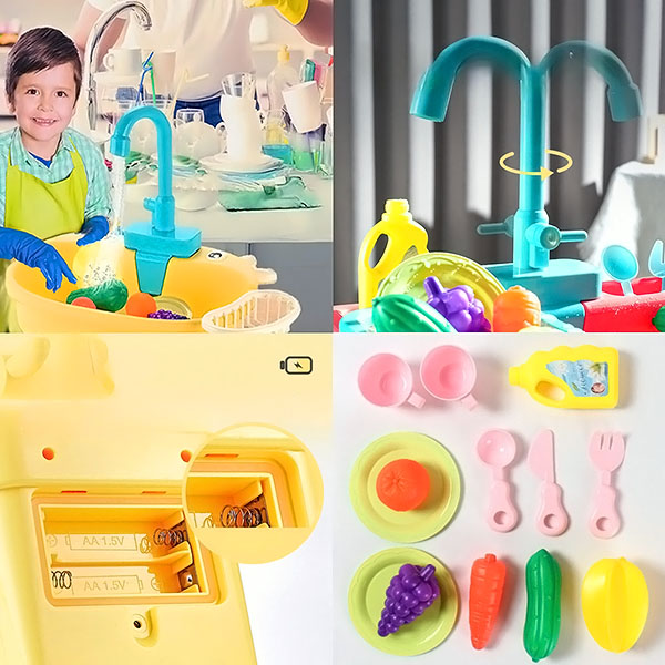 Dzięki tej zabawnej i funkcjonalnej umywalce dzieci mogą wykonywać codzienne czynności, takie jak mycie naczyń, warzyw, a nawet zabawek, pomagając im budować pewność siebie i uczyć się odpowiedzialności. To idealny sposób na wczesne zachęcanie do samodzielności!
