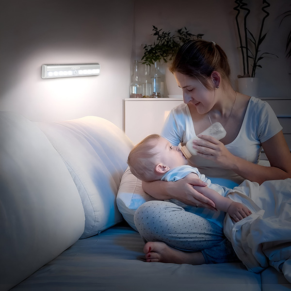 Nigdy więcej nie potkniesz się w ciemności! Zainstaluj tę lampkę w pobliżu nogi łóżka, aby po przebudzeniu w nocy automatycznie się zaświeciła, prowadząc Cię bezpiecznie do łazienki lub drzwi.